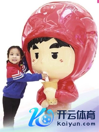 3月24日,小一又友与周杰伦卡通雕像合影。本报记者 陈聪聪 摄