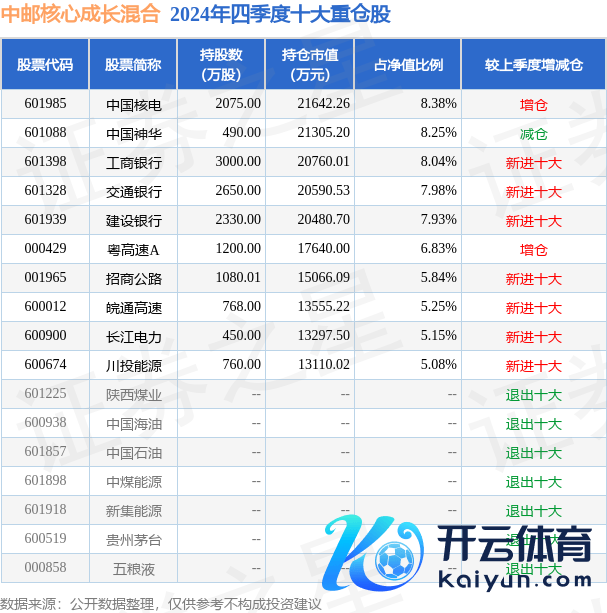 中邮中枢成长混杂为混杂型-偏股基金,字据最新一期基金季报显现,该基金钞票建树:股票占净值比92.41%,债券占净值比0.77%,现款占净值比9.34%。基金十大重仓股如下: