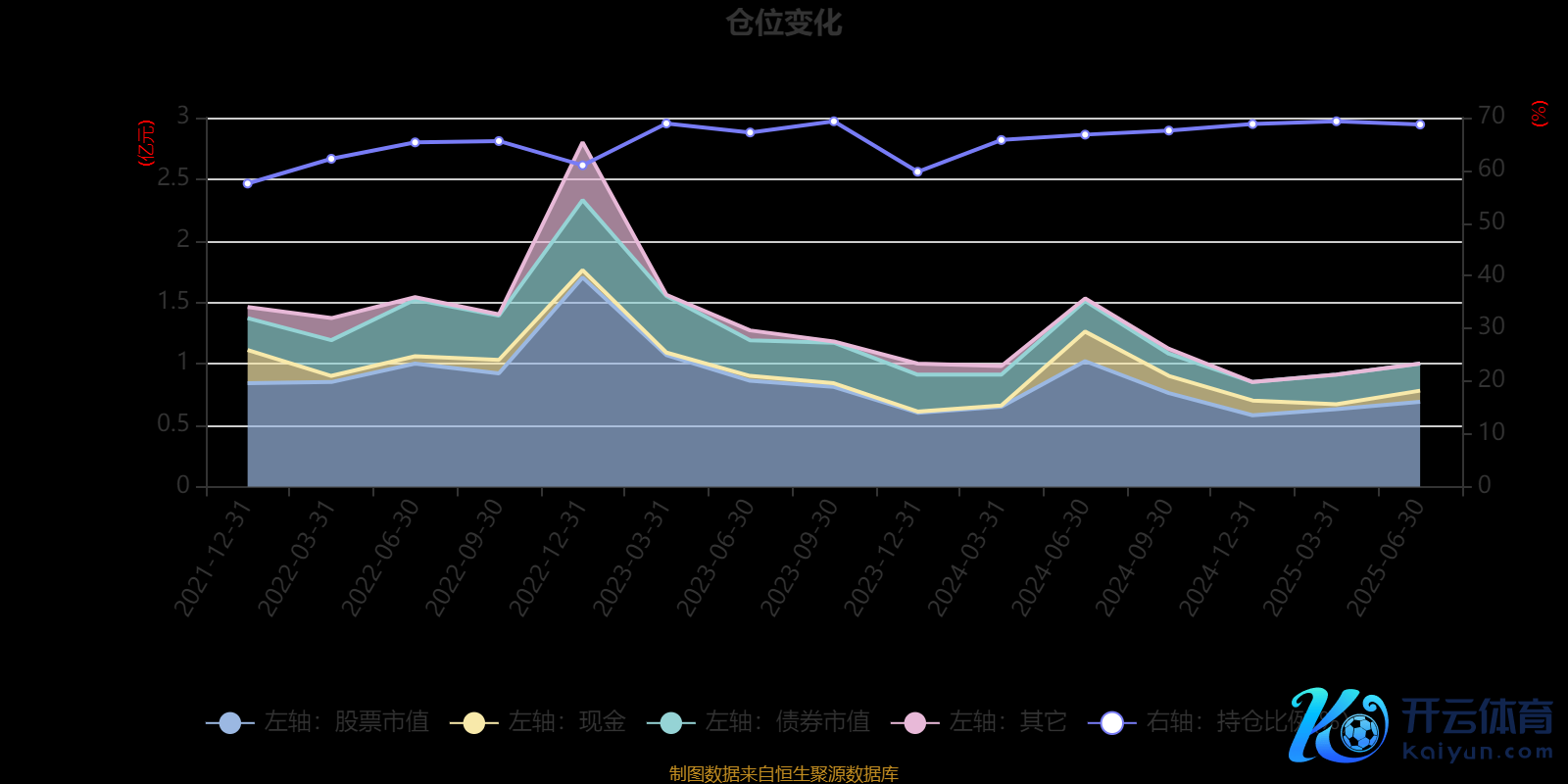 据依期讲演数据统计,近三年平均股票仓位为66.54%,同类平均为80.43%。2023年三季度末基金达到69.3%的最高仓位,2021年末最低,为57.49%。