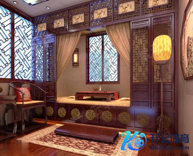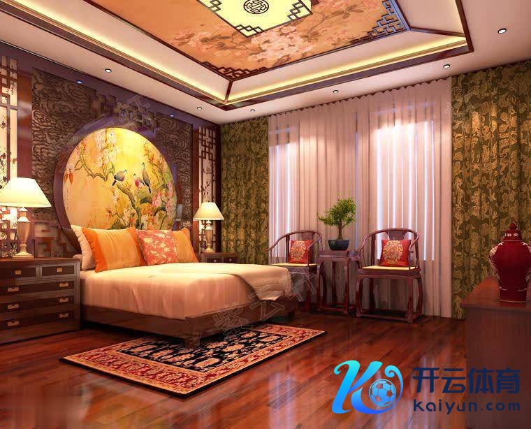 登第作风装修的卧室举座保合手典雅大方,软装置色选拔素雅的素色开云体育,床头墙面选拔圆形艺术造型与红木边框狡计,营造出古典好意思丽又文艺的复旧豪华空间感。
