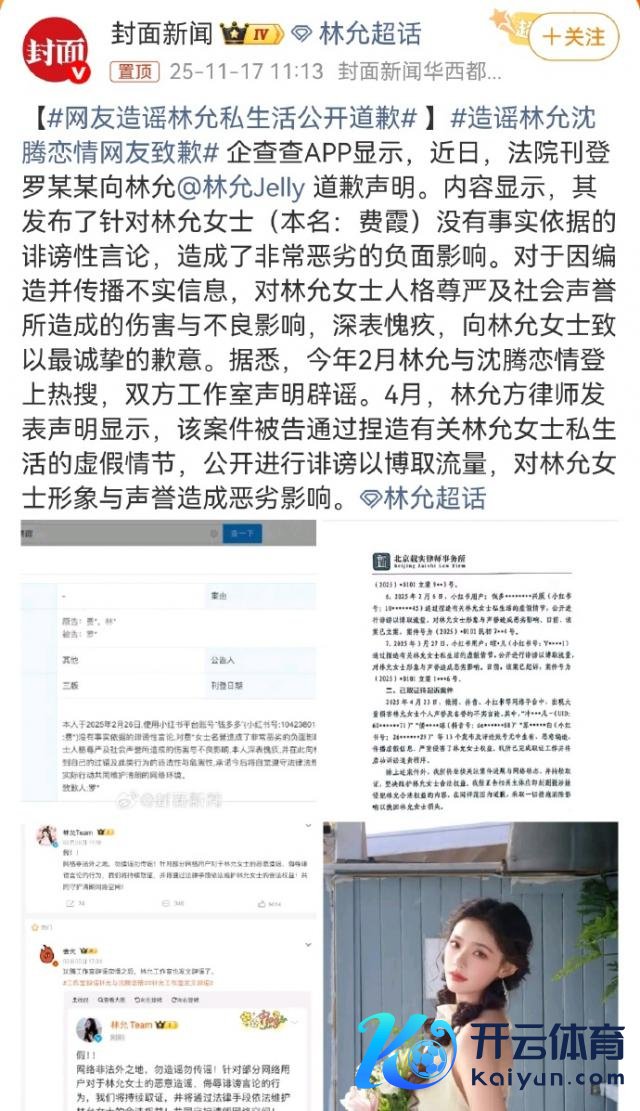 握造"林允沈腾隐婚生子"的首发斥责者,昨年 11 月就一经登报公开谈歉,阐发两边仅为综艺互助,那时还上了一个 # 林允 天亮了 # 的热搜。