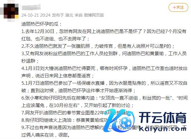不详是在 2022 年底至 2023 年头,热巴因为集结几个月莫得公开出头,也莫得插足晚会、红毯之类的大型举止,再加上一张穿着宽松的机场路透,就被猜"是不是怀胎了"。