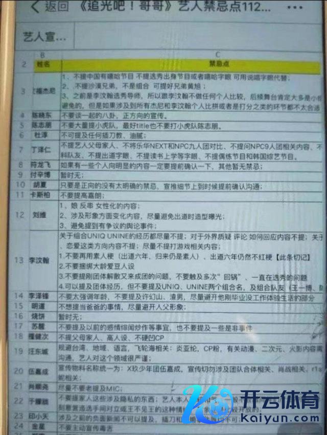 那时网上传出一张艺东说念主禁忌点,于拖拉那一栏写着"不要说起家东说念主这些触及隐秘的东西,艺东说念主本东说念主相比温文,一般不会跟同伴产生梗阻。"