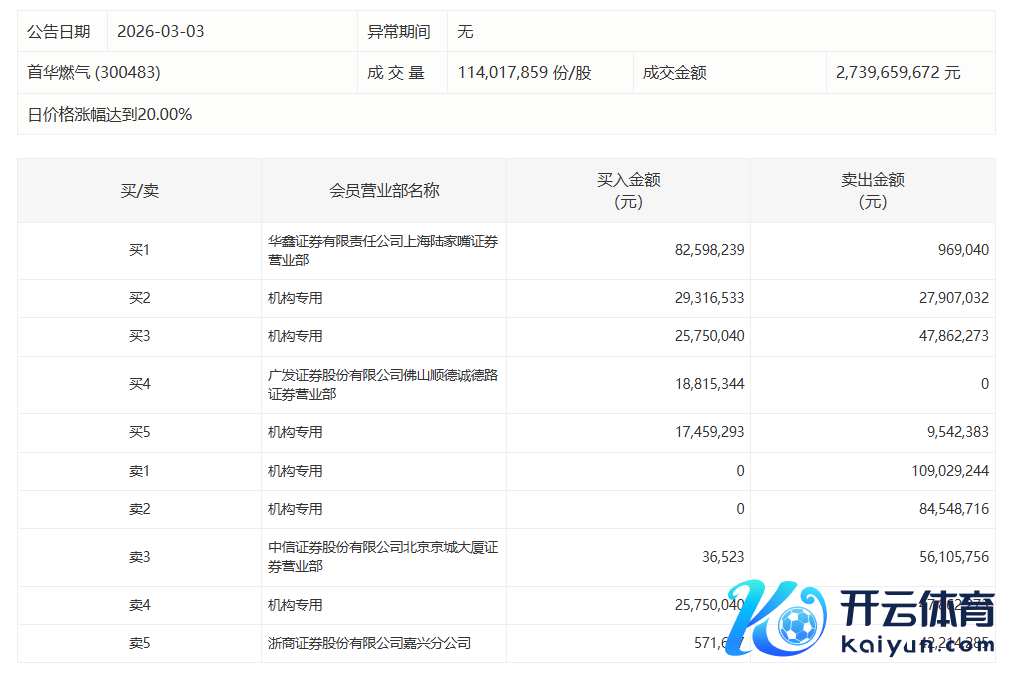 首华燃气当天20%涨停,有3家机构专用席位净卖出2.16亿元首华燃气当天20%涨停,有3家机构专用席位净卖出2.16亿元